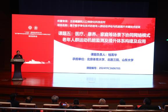 2025年10月19日下午,“十四五”国家重点研发计划“主动健康与人口老龄化科技应对”重点专项——“基于数字孪生技术的老年人群运动评估与机能提升关键技术研发”项目启动会于国家会议中心隆重召开,项目牵头单位为北医三院,“体医工”研究领域的权威专家与项目骨干单位汇聚一堂,我院钱菁华教授作为课题负责人应邀出席。